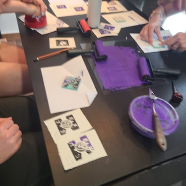 Nos familiarizaremos con los materiales, grabaremos en una plancha de linóleo y haremos unas primeras pruebas de estampación.